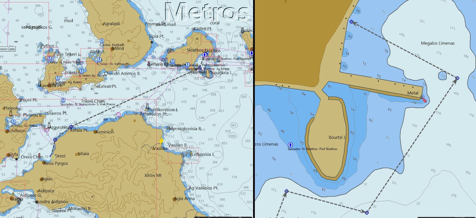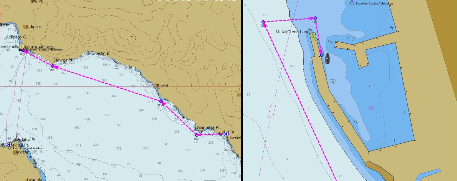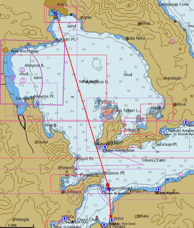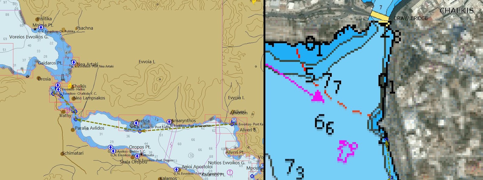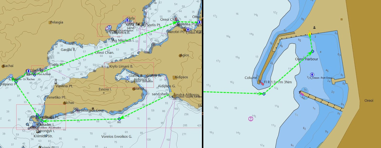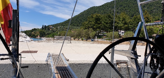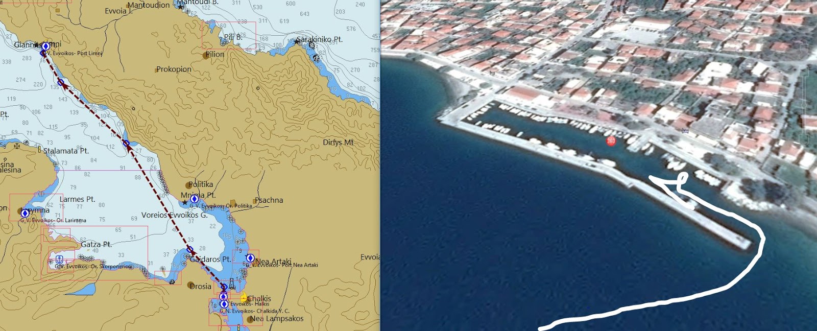 Salimos temprano de Karavos, pasando por delante de Eretria y adentrándonos en la zona donde se levanta la ciudad de Chalkis, donde un canal de solo unos 20 metros de ancho permite a las tierras del Este que se las llame isla. La isla de Evia.