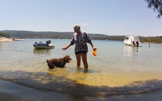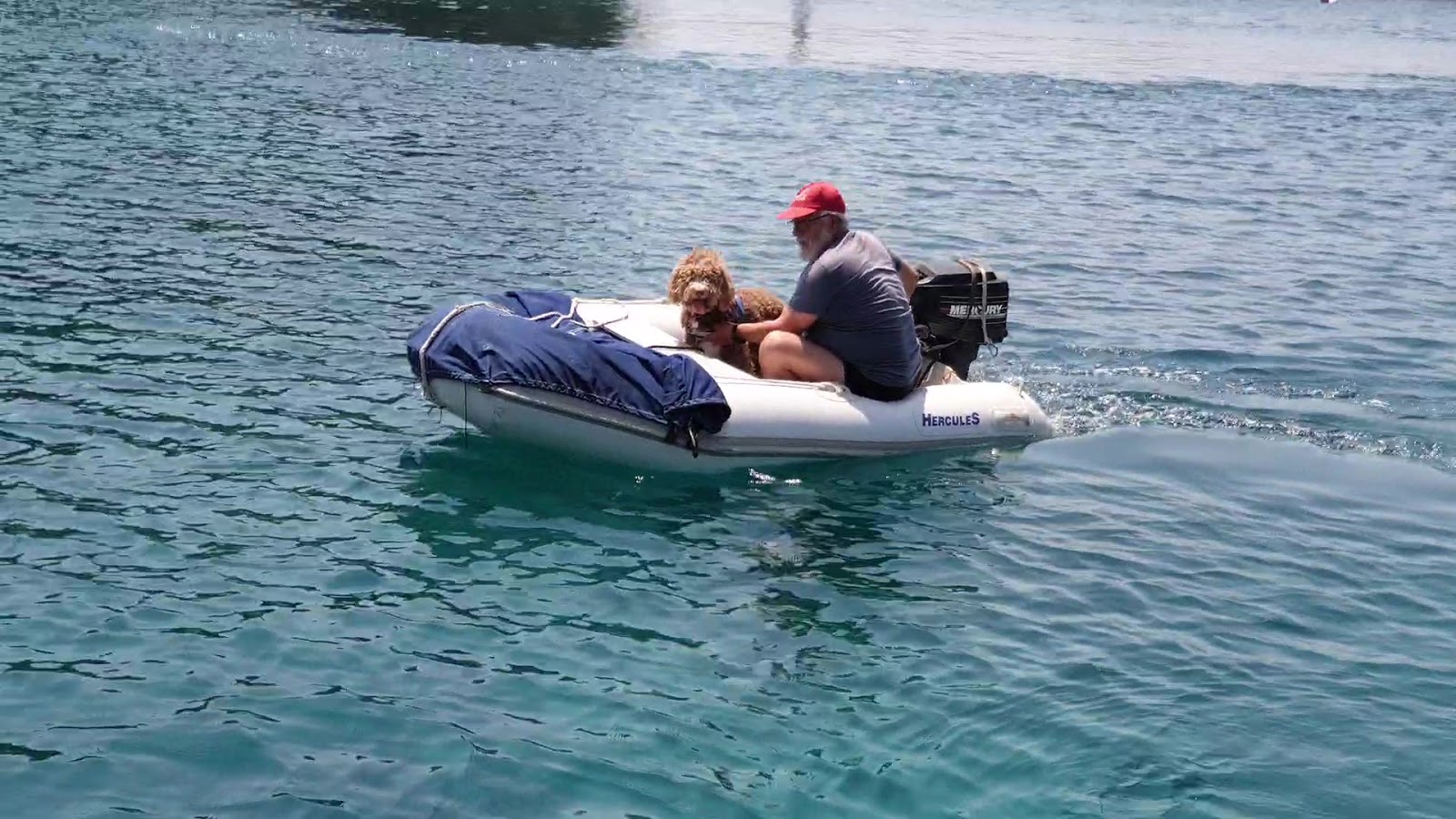 Aprovecho para hacer el bautismo de zodiac a Drako, ya que nos esperan muchos dias de fondeos en los que dependeremos de este medio para que haga sus necesidades.